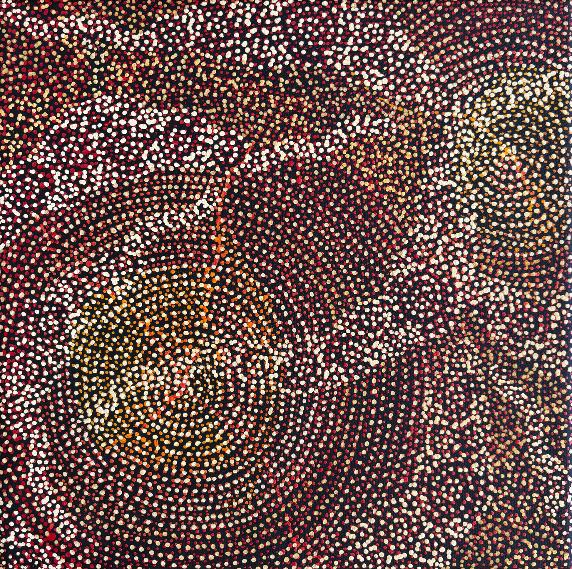 Inspired by the big storms occurring in the Northern Territory. Growing up Sarrita was always fascinated by the rain and lightning seen in the distant horizon and would find new patterns and colors every time she watched these amazing natural occurrences.