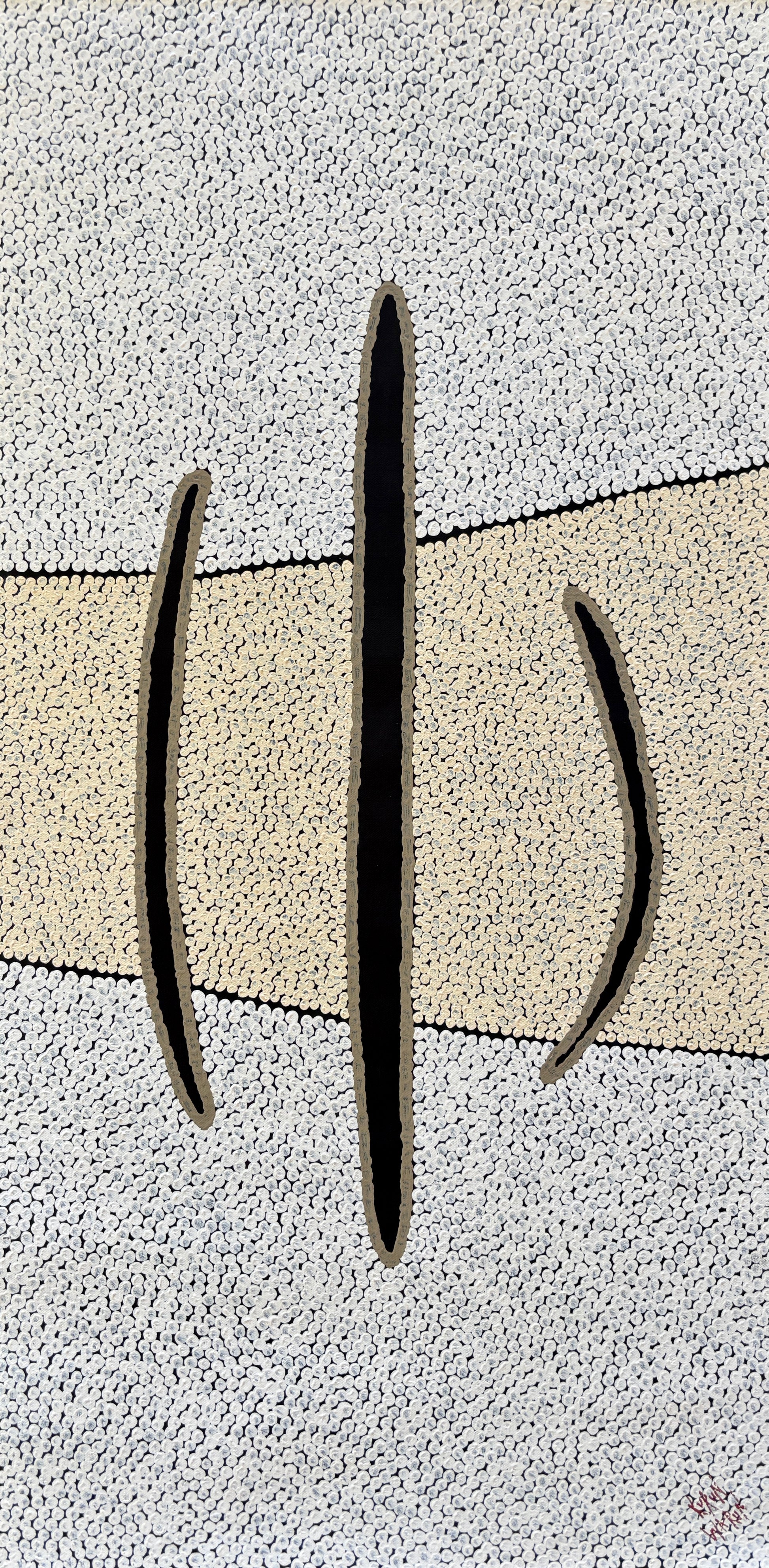 My aboriginal dot paintings have a traditional meaning, which is not always immediately noticed, but within the colours, lines, and space, you can see an underlying story. My use of contrasts are done so that the overall piece is left striking but peaceful.