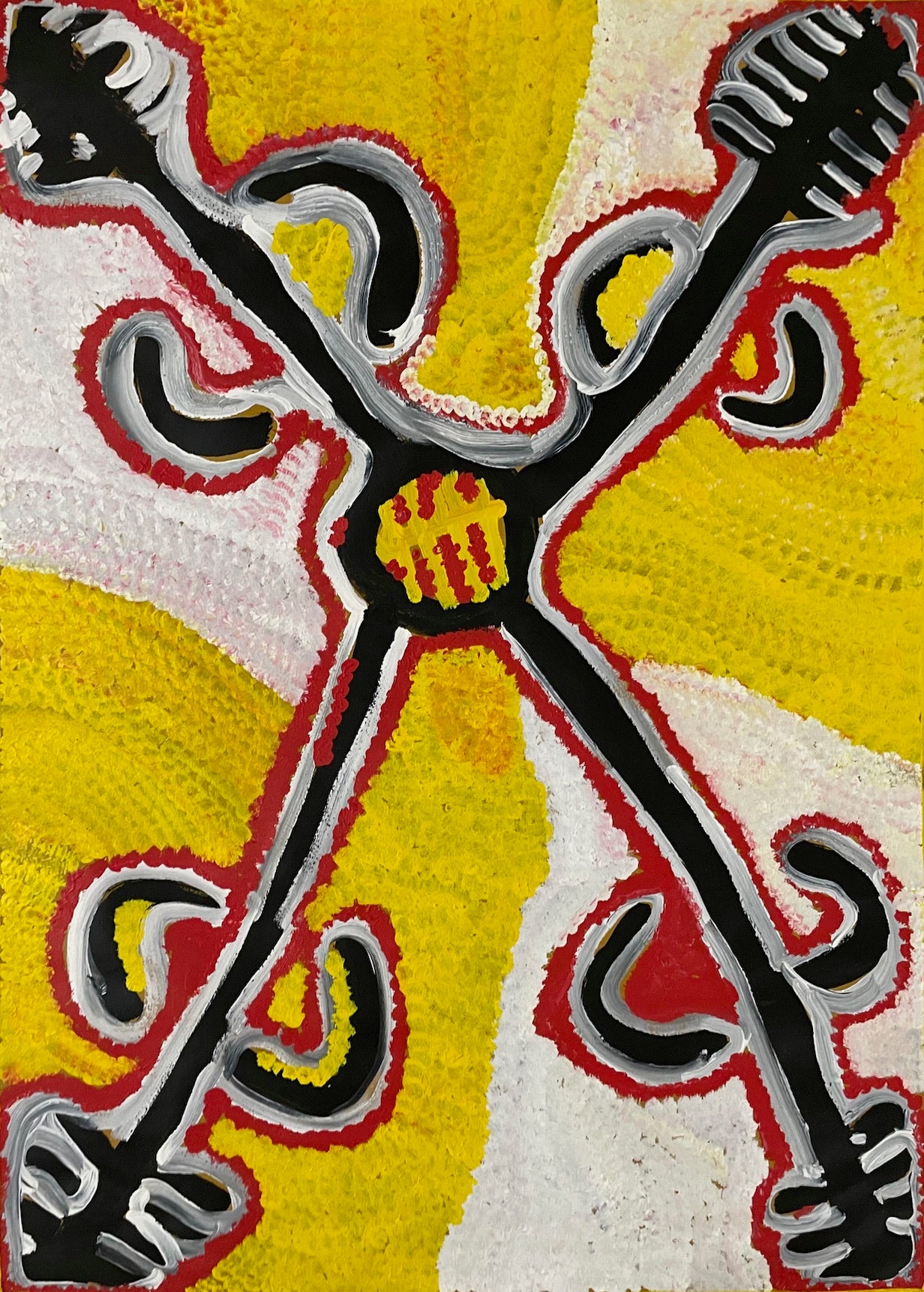 Lorna Fencer Naparrula was a senior artist from Lajamanu, in central Northern Territory. She was born around 1924, near where the Granites mine is now situated in the Tanami Desert. She was the custodian of “Yummurrpa” country and the Caterpillar and Bush Potato (Yam) Dreaming that are associated with that land.