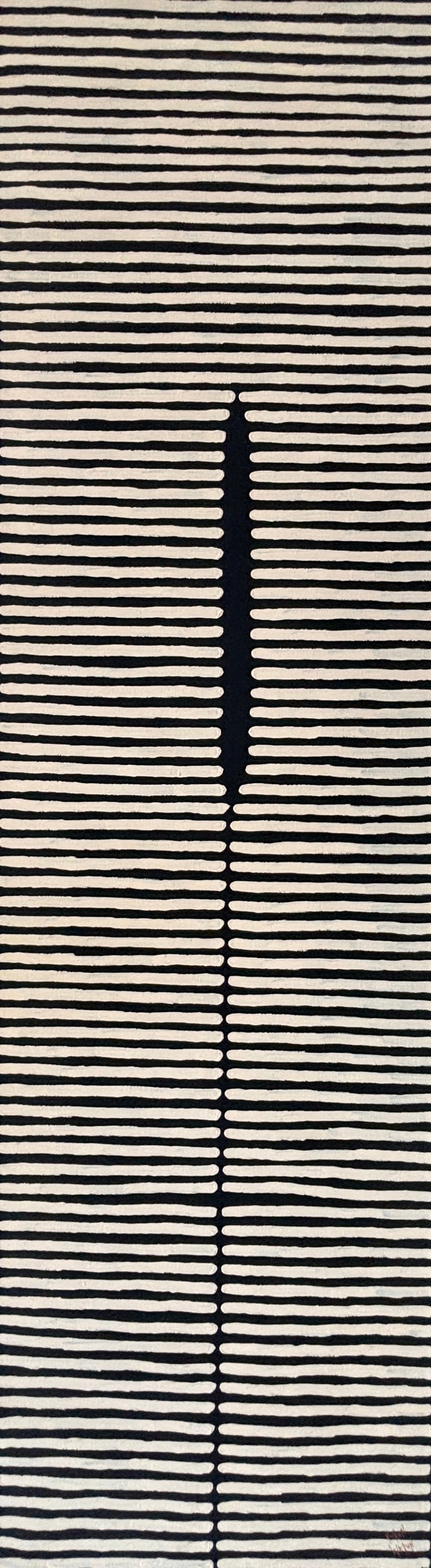 My aboriginal dot paintings have a traditional meaning, which is not always immediately noticed, but within the colours, lines, and space, you can see an underlying story. My use of contrasts are done so that the overall piece is left striking but peaceful.