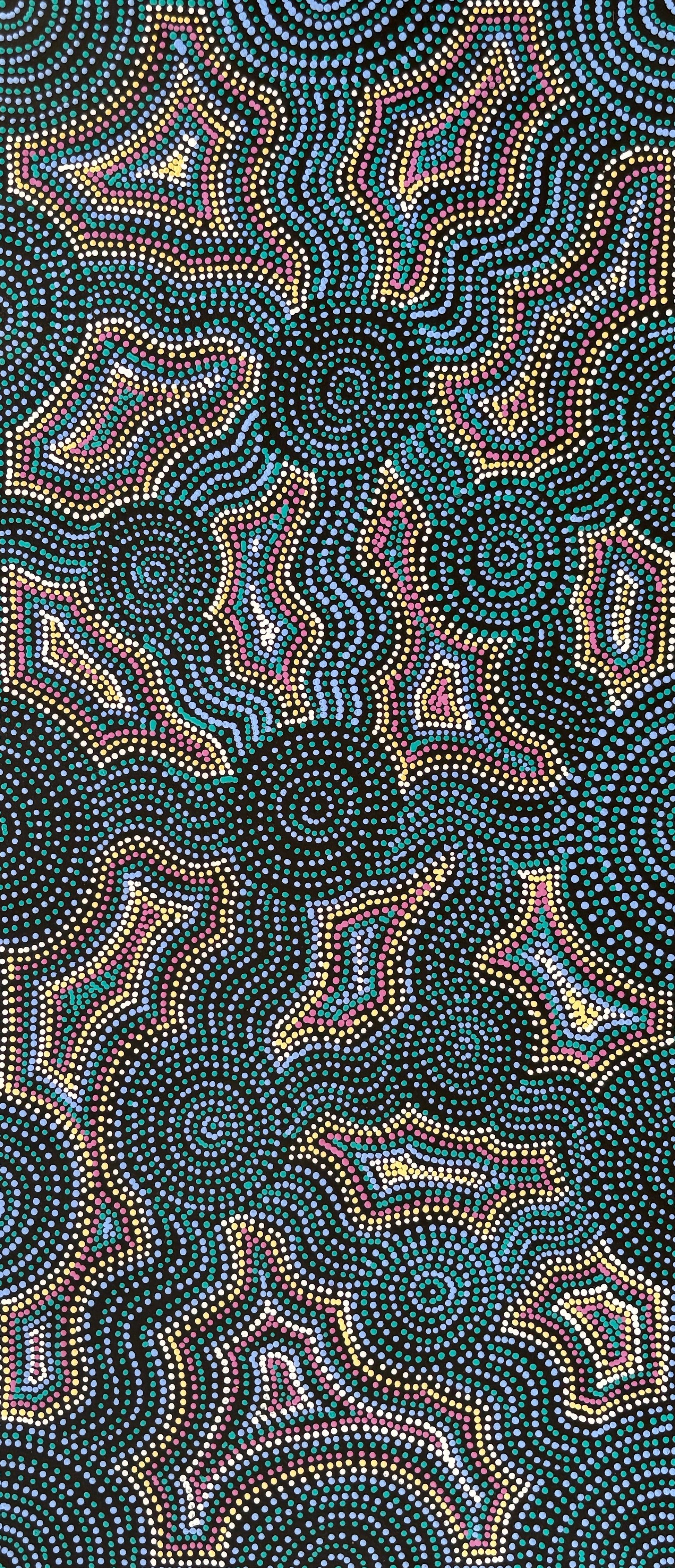 Caroline is now based in Darwin with her sisters who are also emerging painters. She continues to connect with her country by collecting bush tucker and teaching her children about traditional plant uses and edible fruits.